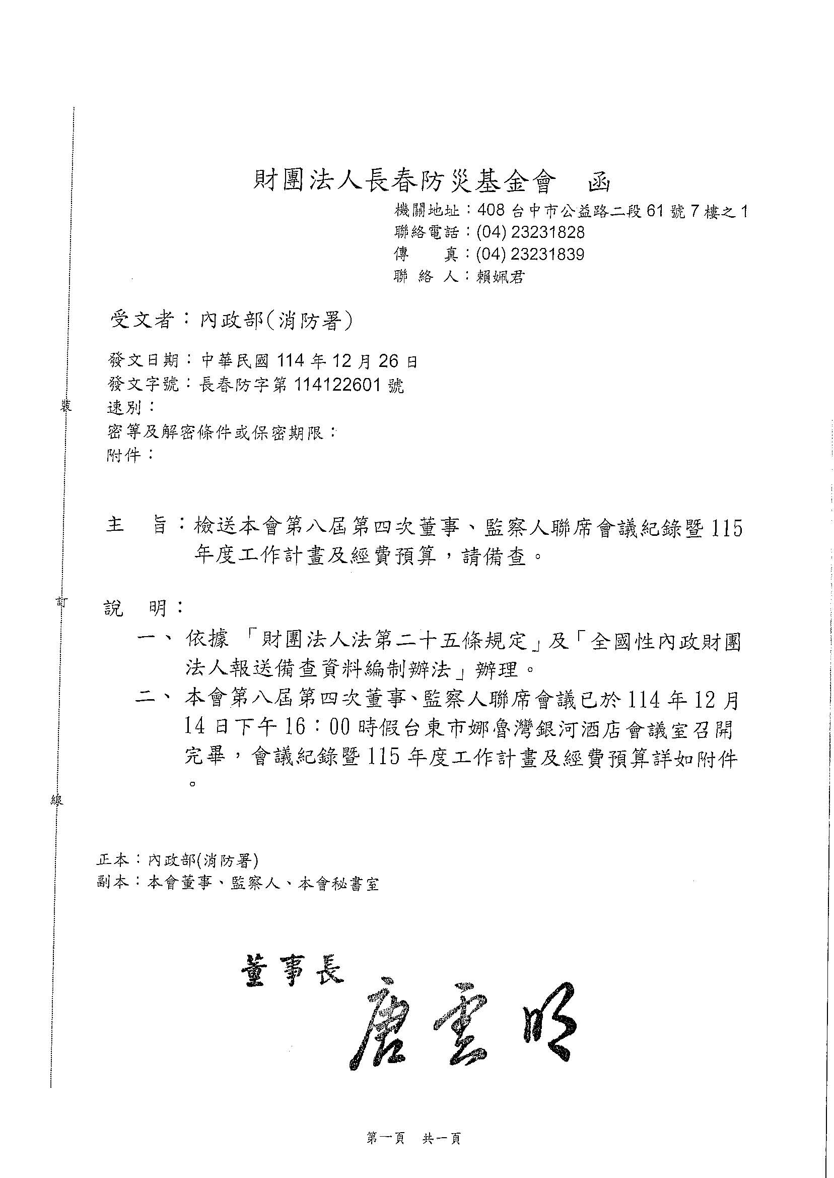 114年度工作計畫及經費預算