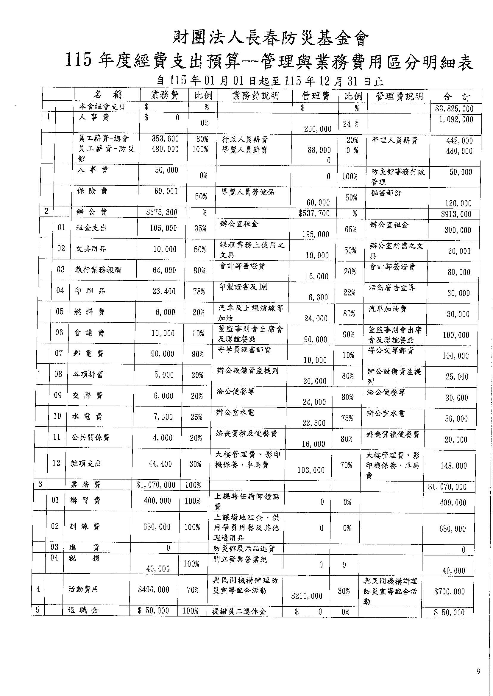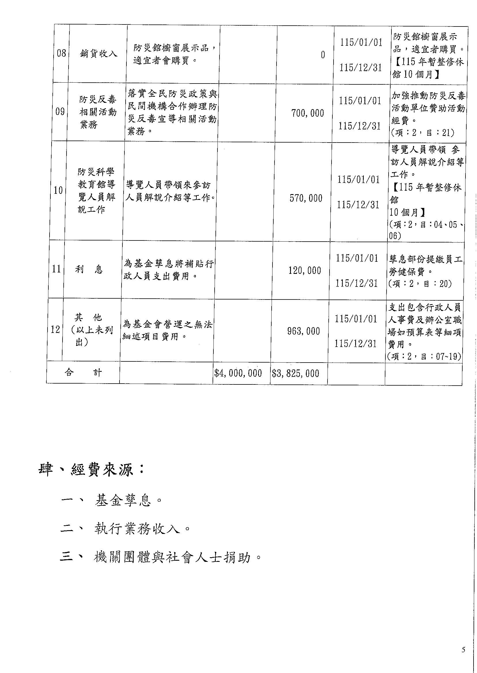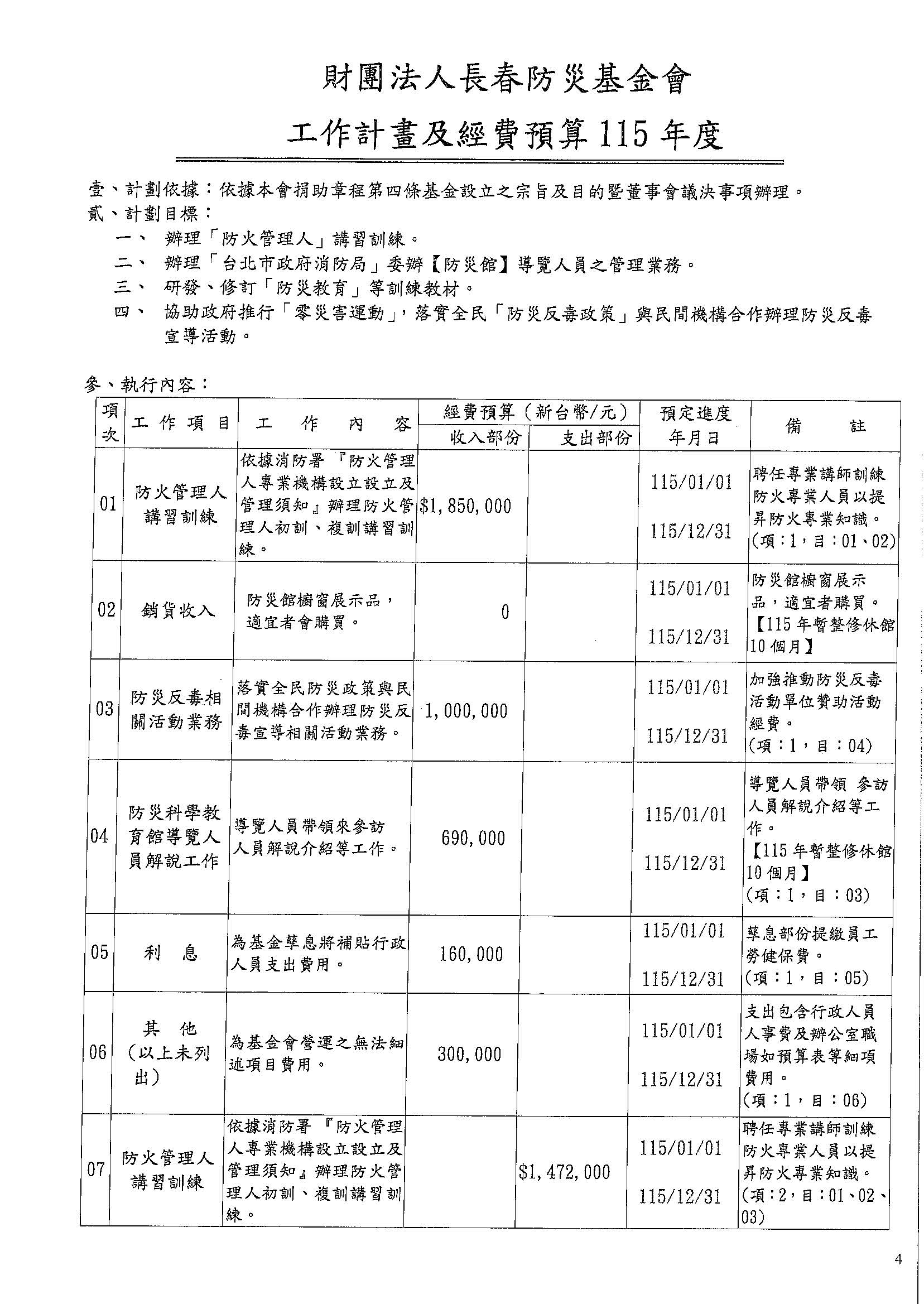 115年度工作計畫及經費預算